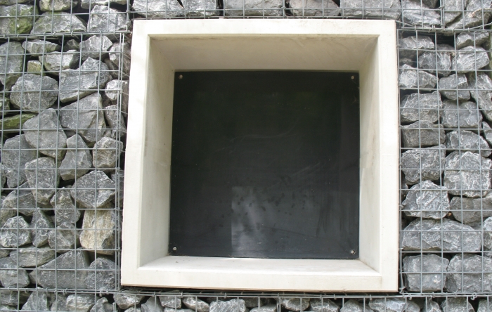 De afzonderlijke bakken zijn aan de buitenzijde voorzien van een geslepen beton uiterlijk en zijn op en naast elkaar geplaatst. Aan de voorzijde zijn de bakken ondersteund door een keerwand met een geslepen zichtzijde en aan de achterzijde op een balk tegen een grondwal geplaatst.