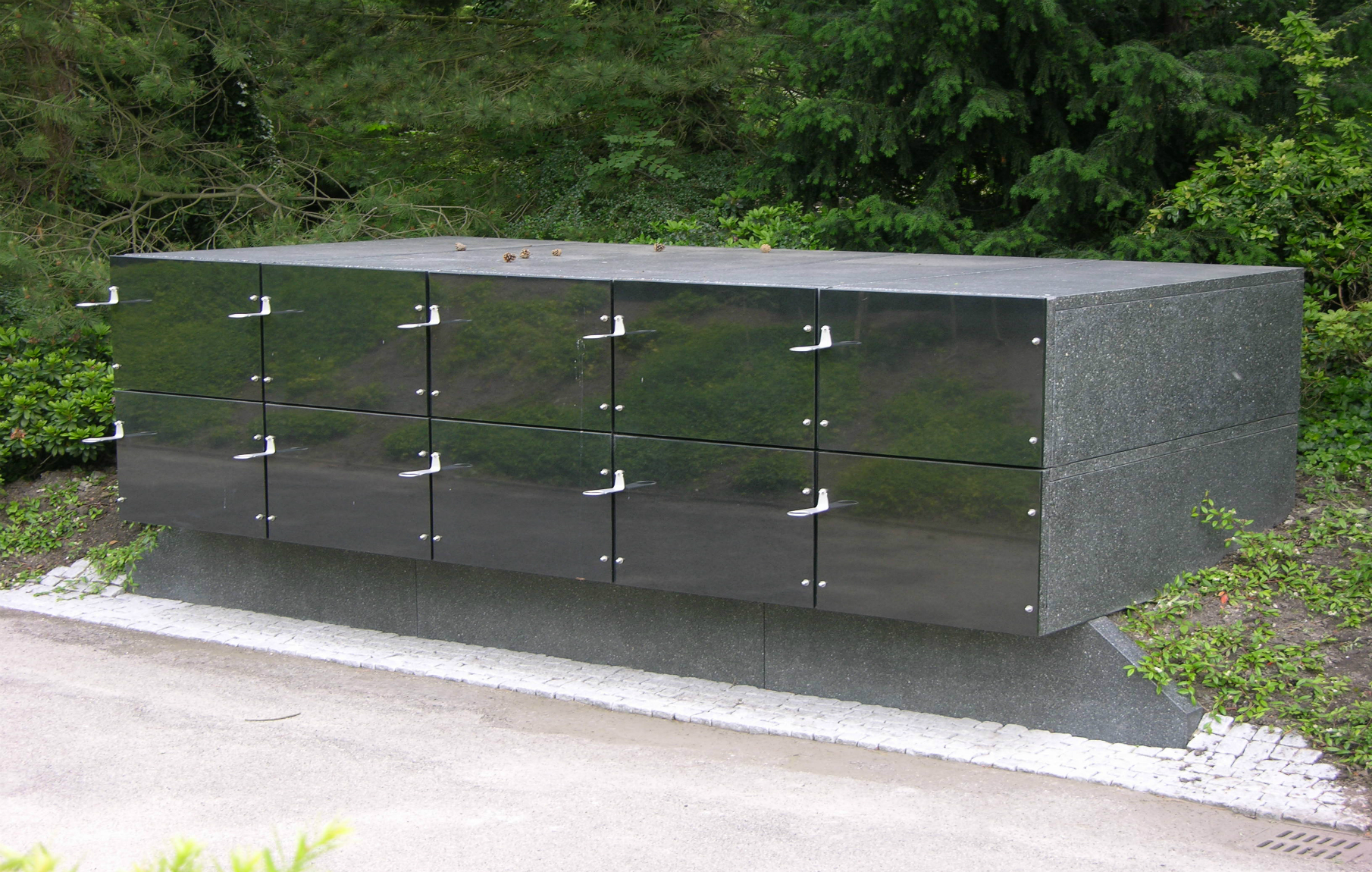In 2009 zijn de eerste 90 GIDAL-GALERIJGRAVEN gerealiseerd. De horizontale balken, de staanders, de voorzijde van de dakplaat en de verticale afsluitbalkjes (lijsten) zijn uitgevoerd in Pearl White graniet en de gedenkplaten in Indian Black.