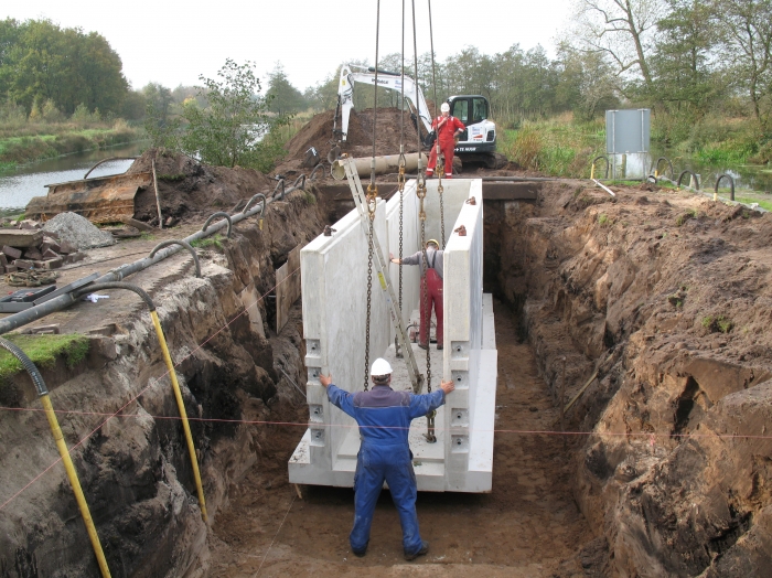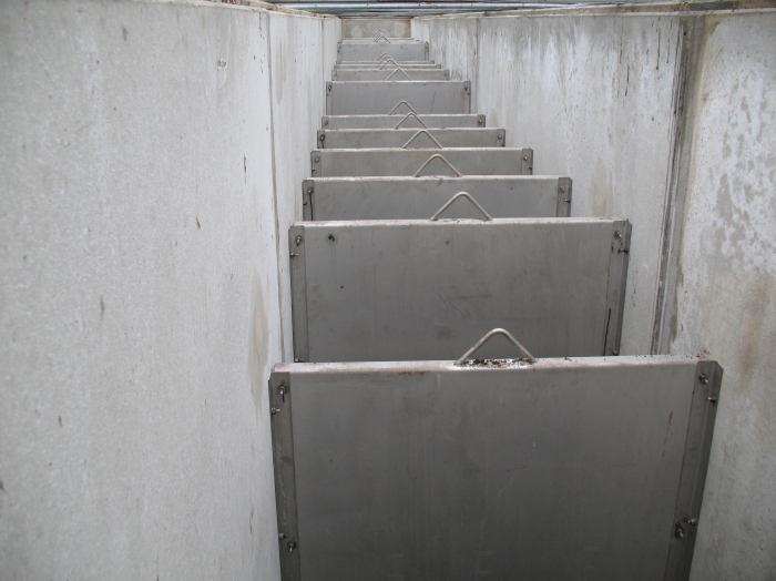 Deze vispassages bestaan uit een soort lange kokerduikers met daarin schotten met openingen welke afwisselend links en rechts en trapsgewijs aangebracht worden. De bodem wordt bedekt met een stortsteen. Hierdoor ontstaat een niet te harde waterstroming met de nodige rustplaatsen en kunnen vissen en bodemkruipers eenvoudig stroomopwaarts zwemmen en zo de stuw of dam passeren. Ook behoren speciale palingstuwen en terugslagkleppen welke vispasseerbaar zijn tot het leveringsprogramma.