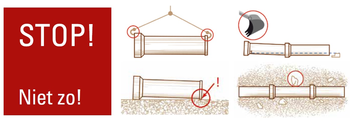 Met het verpakkingssysteem (minipack in maxipack) kunnen buizen veilig en probleemloos op de bouwplaats worden opgeslagen. Afzonderlijke buizen moeten op kanthout worden gelegd. Losse hulpstukken worden staand op de mof gestockeerd.