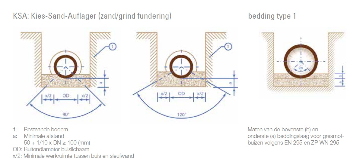 De manier waarop de buizen worden gepositioneerd en ingebed, heeft een grote invloed op de ligging en op het draagvermogen van de leiding. Gresbuizen moeten zo worden ingebouwd, dat het volledige buislichaam ondersteund wordt, zodat er geen puntbelastingen optreden en zodat er een gelijkmatige spanningsverdeling kan worden gegarandeerd. Zoals eerder al vermeld, moeten de buizen in het midden van de sleuf liggen. Daarbij moet de minimale sleufbreedte volgens EN 1610 worden gerespecteerd.