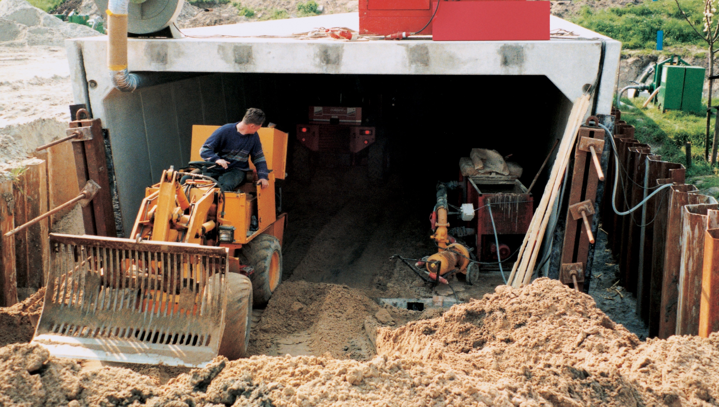 De trekmethode is door ons voor het eerst in 1976 toegepast bij een veetunnel met afmetingen van 1.50x1.75 m in een tertiaire weg te Vries in Drenthe, onder directievoering van de Grontmij te Assen.