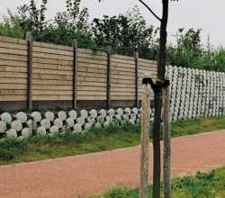 Door de uitgekiende vorm van de Decibelblokken zijn ze uitstekend geschikt voor het maken van een solide geluidswal-constructie.