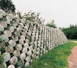 De trogvormige Decibelblokken worden in de lengte en de diepte van de muur verspringend gestapeld.