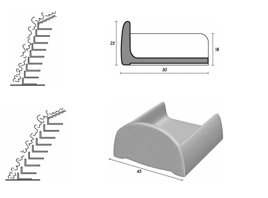 Praktische basis-elementen uit beton voor de bouw van scheidingswanden bij tuinen, terrassen, wegen en plantsoenen. De unieke stapelbare vorm van de blokken garandeert een sterk en degelijk verband. Bovendien is er de mogelijkheid om in wisselende hellingshoeken en bochten te werken. Slechts bij hoge uitzondering zal een vorstvrije fundering noodzakelijk zijn.