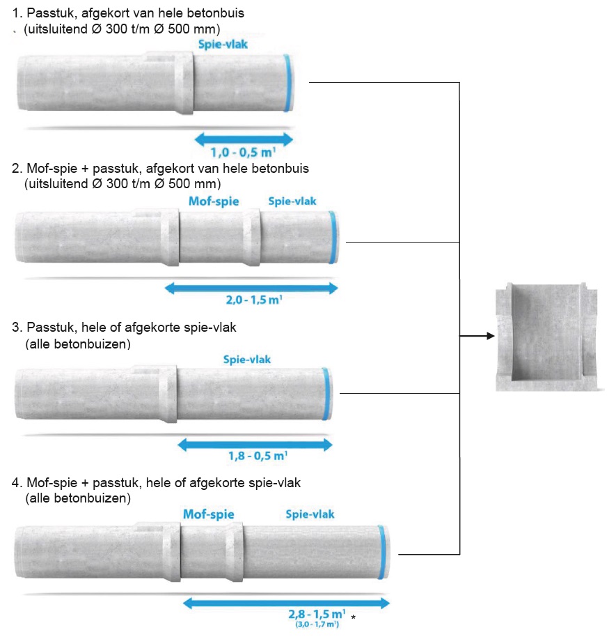 *De maten zijn van toepassing voor de buizen Ø 1000 mm. Lengte mof-spie is 1,2 m¹