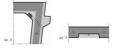 Voor de verlichting kunnen sparingen voor armaturen worden aangebracht, evenals doorgaande kanalen voor de bedrading. De plaats en afmetingen van deze sparingen worden in overleg met de opdrachtgever bepaald. Gekozen kan worden tussen het onderbrengen van de armaturen in de hoekafschuining, éénzijdig of tweezijdig (tek. 8), of in het midden van het dek (tek. 9).